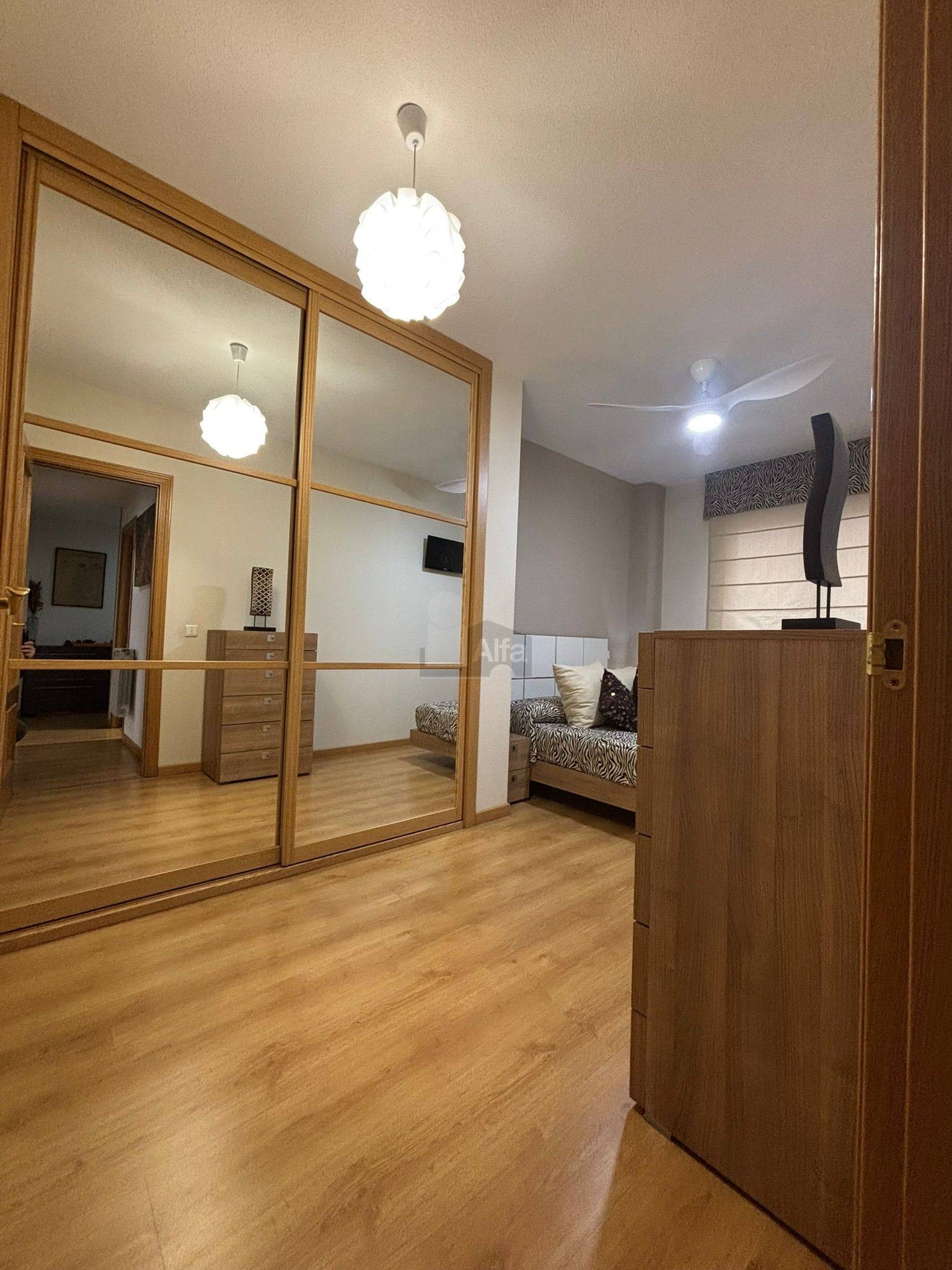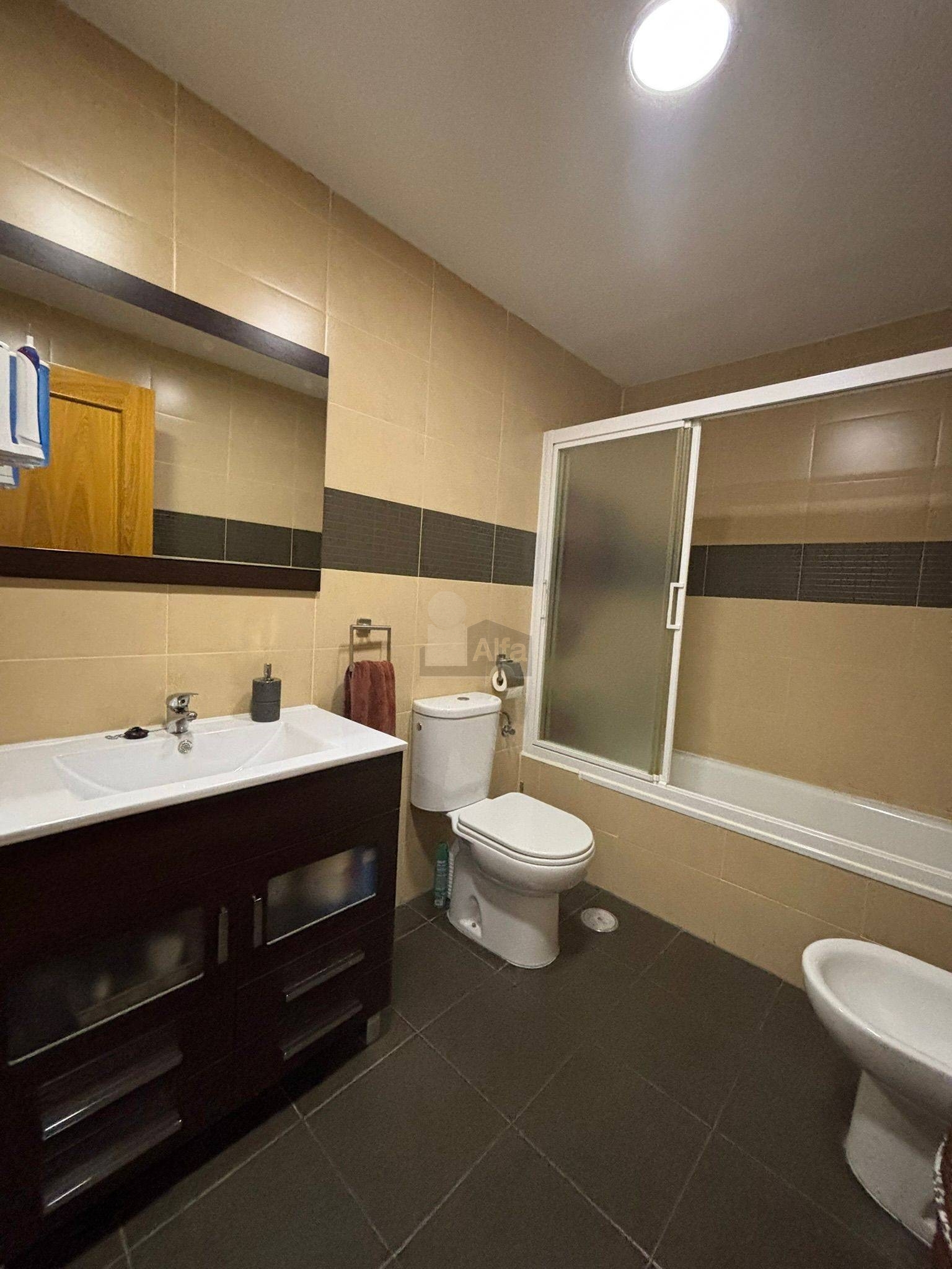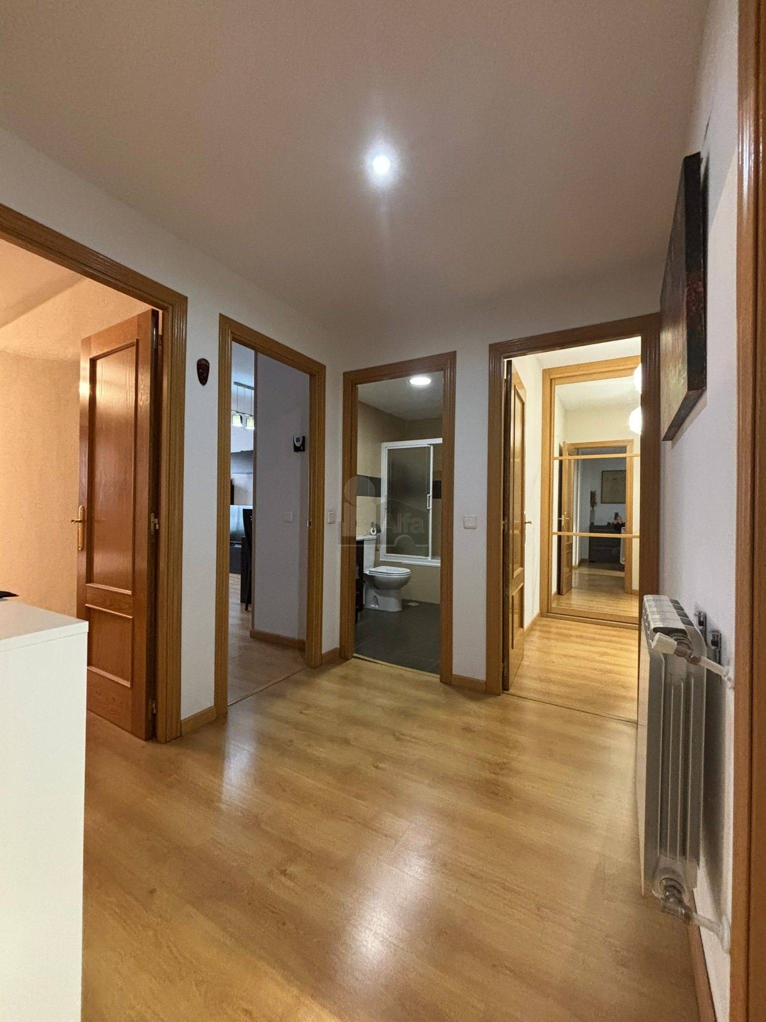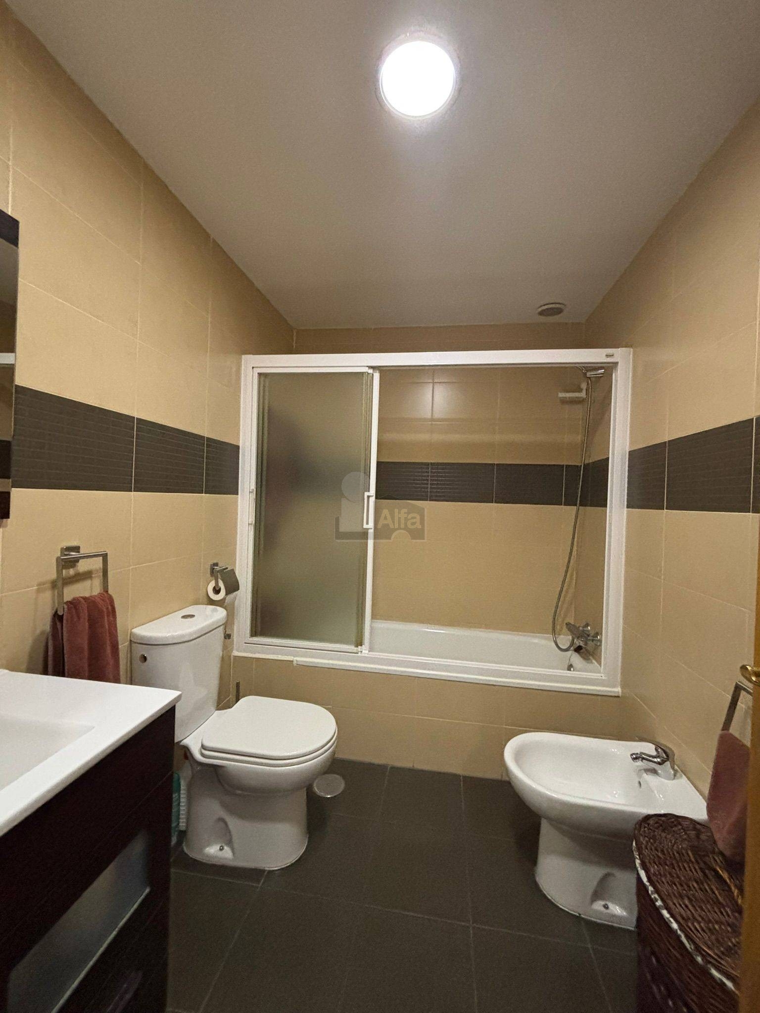 El piso dispone de dos dormitorios, ambos con armarios empotrados y el dormitorio principal ofrece un espacio cómodo y acogedor. El cuarto de baño completo, equipado con bañera, es ideal para disfrutar de momentos de relax, además de bidé y mueble con cajones y espejo a juego. Los suelos de tarima en los dormitorios y el salón, junto con la cerámica en la cocina y el baño, aportan un toque moderno y funcional.