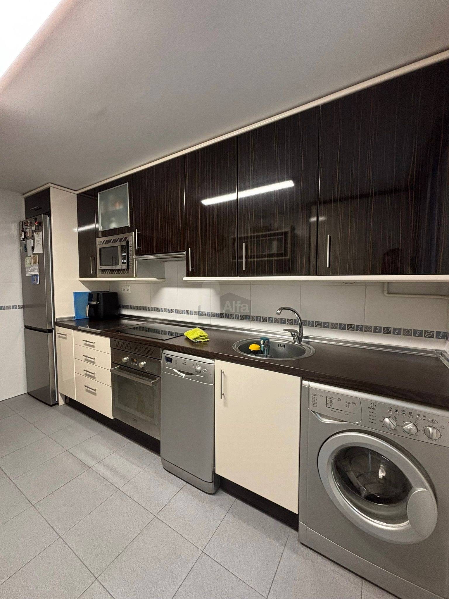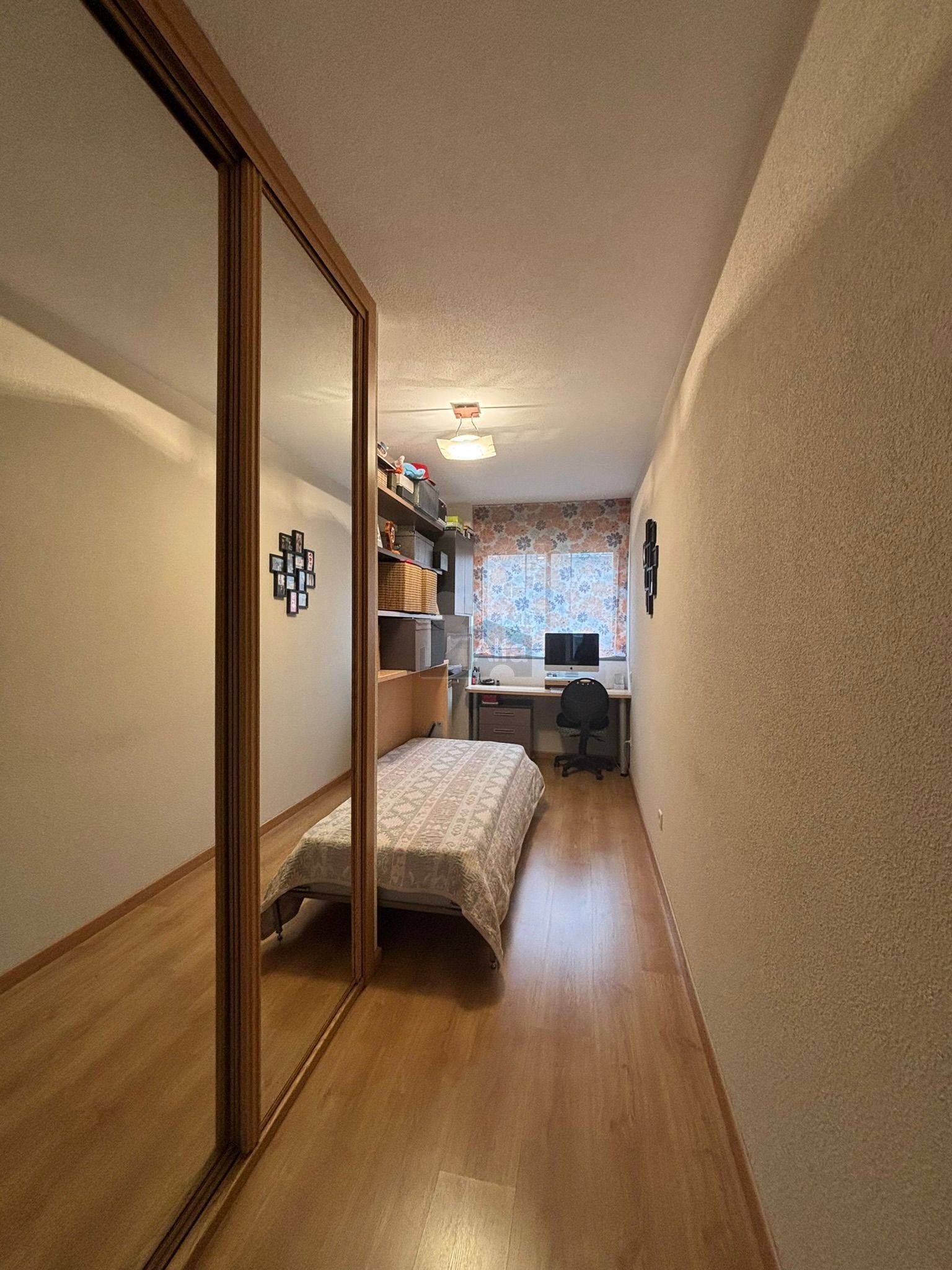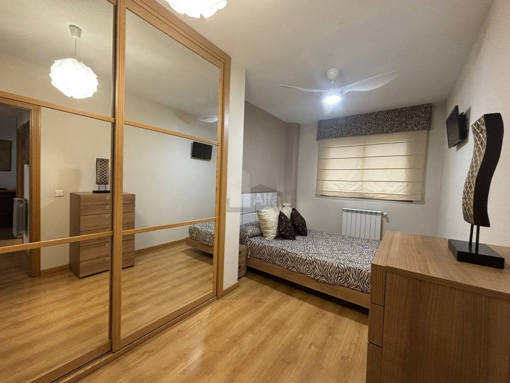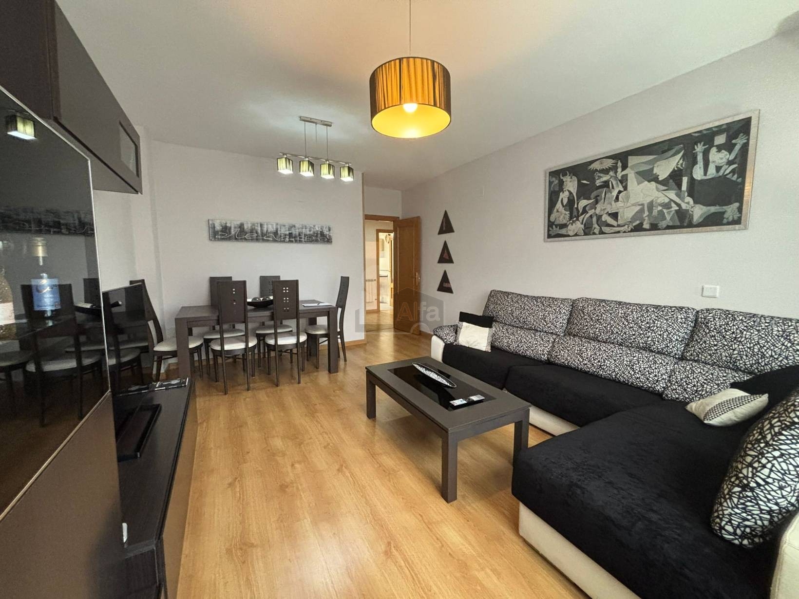 El piso dispone de dos dormitorios, ambos con armarios empotrados y el dormitorio principal ofrece un espacio cómodo y acogedor. El cuarto de baño completo, equipado con bañera, es ideal para disfrutar de momentos de relax, además de bidé y mueble con cajones y espejo a juego. Los suelos de tarima en los dormitorios y el salón, junto con la cerámica en la cocina y el baño, aportan un toque moderno y funcional.