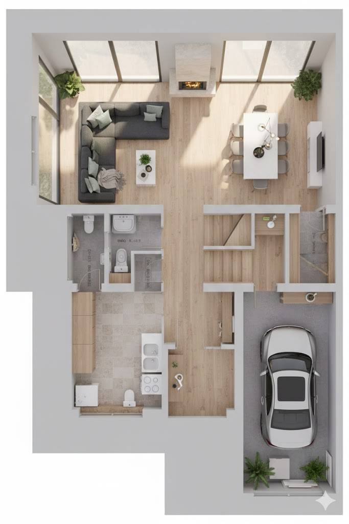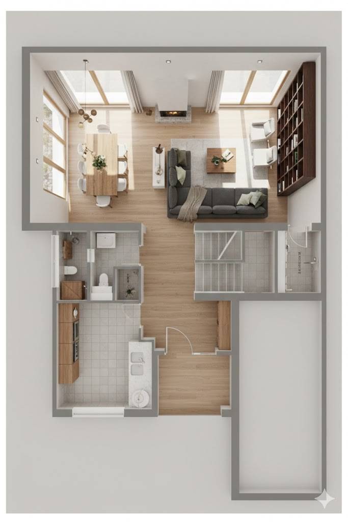 Hemos incluido algunas fotos y planos con IA, para que puedas hacerte una idea de como podrías convertir esta en la casa de tus sueños.